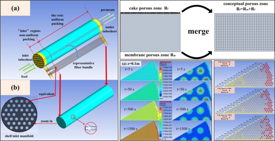 Liwei Zhuang, Gance Dai. Zhen-liang Xu*. Three-dimensional Simulation of the Time-dependent Fluid Flow and Fouling Behavior in an Industrial Hollow Fiber Membrane Module. AIChE Journal, 2018, 64(7): 2655-2669.
