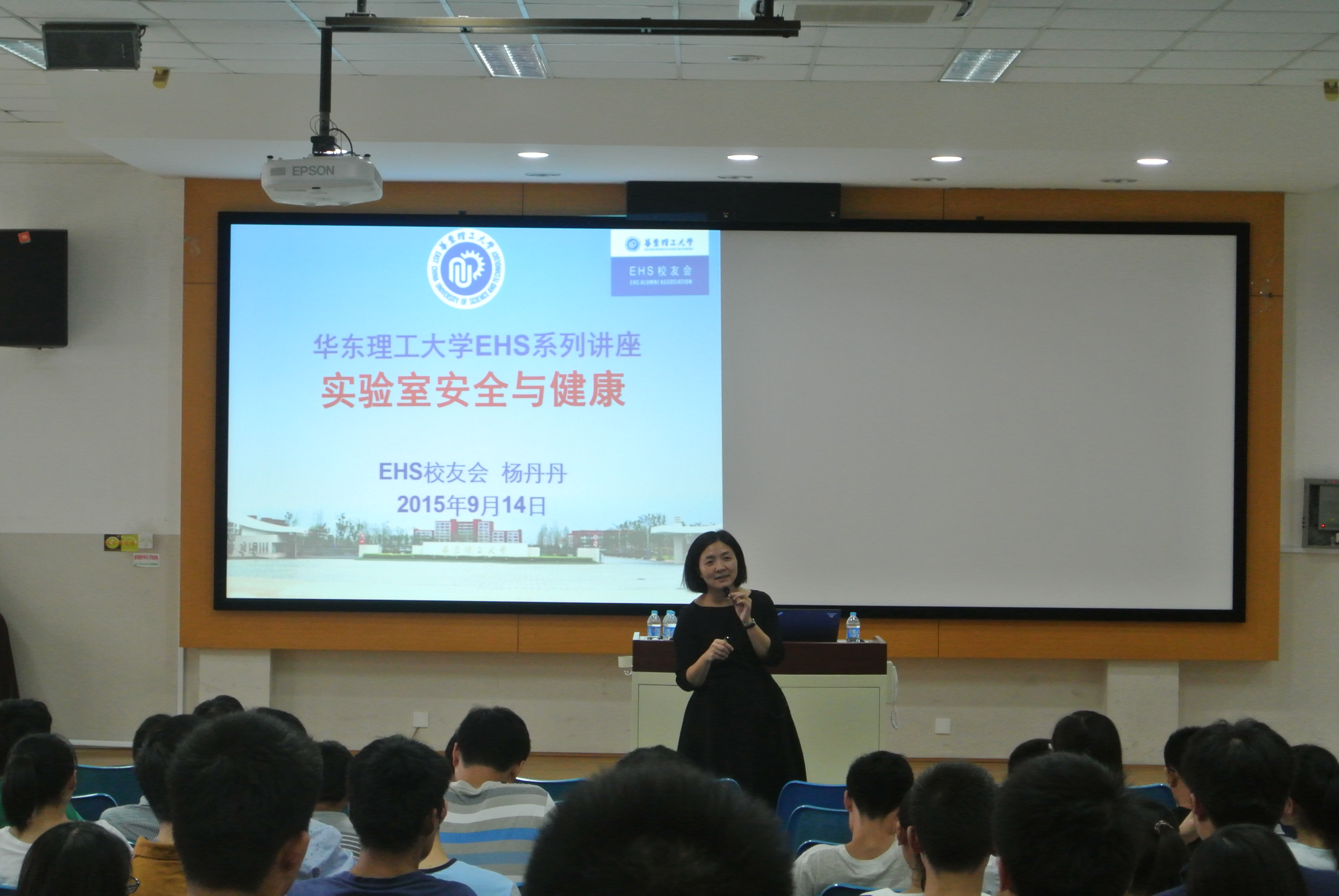 EHS(Environment, Health, Satefy)校友会联合主办的专题报告会在徐汇校区八教101召开。EHS校友会独立高级咨询顾问杨丹丹校友和3M公司技术专员陆文校友为14级研究生作了《实验室安全与健康》专题讲座。