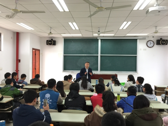 的取得的进步与成绩,分享了两校为联合培养交流生在课程设计、师资投入、学生生活等方面做的工作和逐渐改善的工作方案。最后,他希望大家注重实践,积极参与教师及学长的科研项目和实践课题,提升实践动手能力;珍惜宝贵的机会,扎实学习,兼收两校精神精华;珍惜在上海学习的两年时间,丰富阅历,开阔眼界。