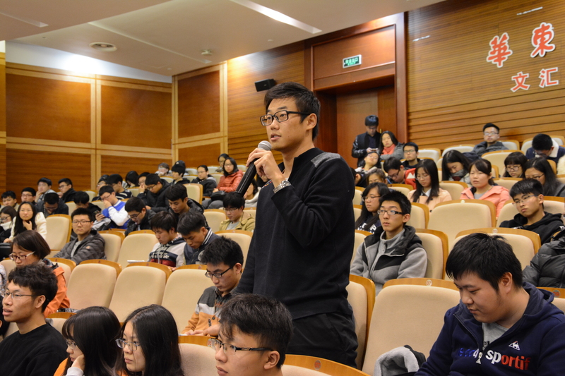 面对在场学生们的踊跃提问,郭旭虹分享了自己对“化工之路”的体会。他指出大学生应培养自己学习与适应环境的能力,学生们在面对全新领域问题时,要主动查阅资料、请教相应方面的专家。同时,就大家对企业工作上的疑惑,郭旭虹点明做出企业工作上的成就不比研究突破简单,关键还是要勤于工作。郭旭虹还分享了自己对国内外学习环境不同点的看法。最后,他建议大家牢记在人生道路上没有终点,需要不断前行,朝着自己的青春理想不断前进。