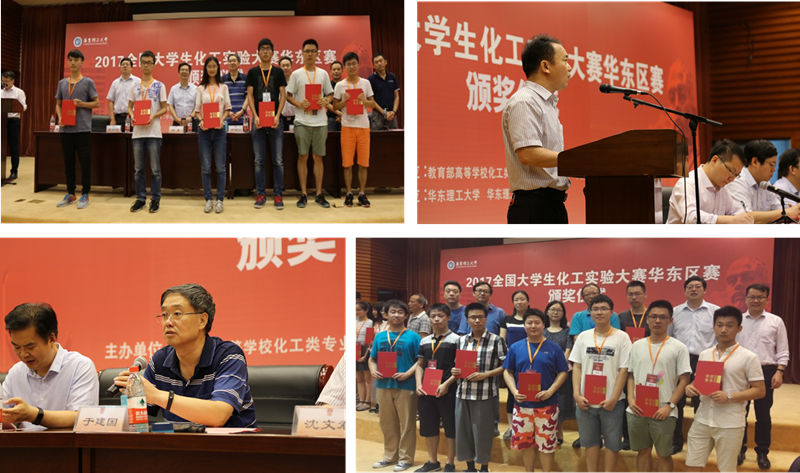 经过2天激烈的角逐,77支参赛队共决出了华东赛区6个特等奖、10个一等奖和16个二等奖。并按照全国组委会的要求,从中遴选出12个高校的12支代表队,推荐参加2017全国大学生化工实验大赛全国总决赛。