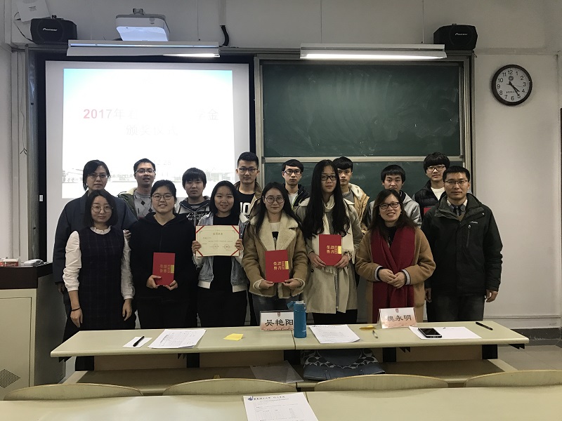 在紧张而激烈的答辩后,进行了“君江科技奖学金”颁奖仪式。14级获奖学生发表了获奖感言,并表达了君江科技奖学金对自己学习生活的重大意义和对君江科技有限公司的感激之情。最后,吴艳阳在颁奖仪式中强调“天行健,君子以自强不息;地势坤,君子以厚德载物。”强调君江科技有限公司总经理孙君同先生的精神,这个奖学金给予学生的不仅仅是物质上的鼓励,更是精神上的支持,是化工精神的一种传承!希望大家能够常怀感恩之心,回报母校,回报社会。