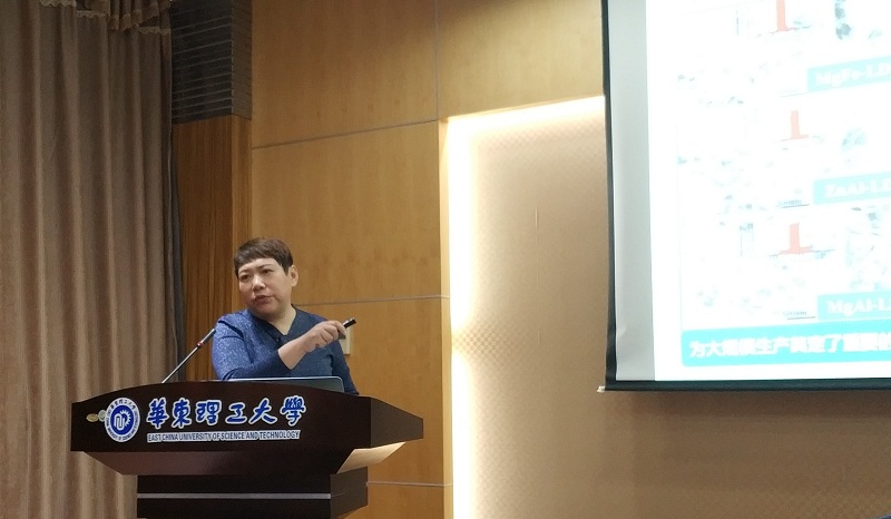 何教授首先用形象的语言和生动的图片给大家介绍了近年来迅速发展的一大类新型功能材料 “插层结构材料”,接着深入浅出地给大家讲解了她们课题组近年来在插层结构的构筑原则、插层组装控制原理、功能导向的插层结构设计等三个方面取得的重大研究进展。同时,她也介绍了基于层状结构的催化材料理性设计与性能优化,主要包括经插层组装设计出较高手性选择性的插层结构分子催化材料,以及经层状前体拓扑转变研制成高分散、晶面取向的负载型金属催化材料等。