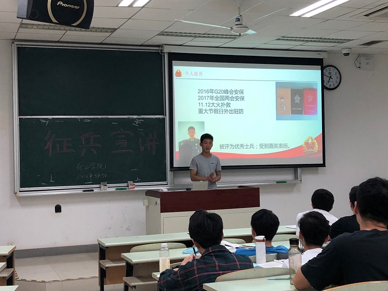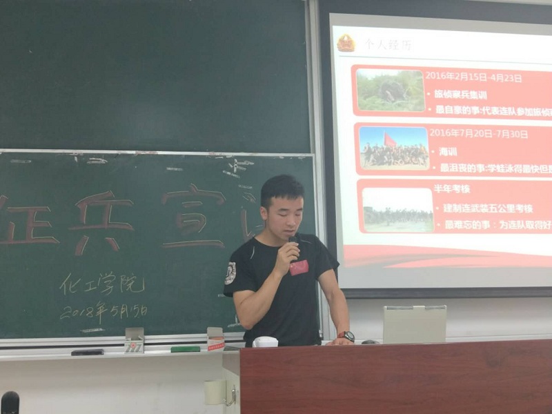 学工委在2018年5月15日晚6:00于教学楼D306教室举办了一场别开生面的征兵动员宣讲会。宣讲会由2016级辅导员强莉主持,宣讲嘉宾为国产无码
