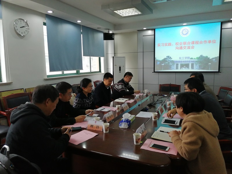 为了加强本科实习实践工作,推动化工专业向“产学研一体化”发展迈出新步伐,12月20日下午,化工专业在实验十二楼507室举办了本科实习实践、校企联合课程合作单位沟通交流会。会议邀请了索尔维(上海)有限公司、上海华谊新材料有限公司、上海石油化工学校、华昌聚合物有限公司、国产无码