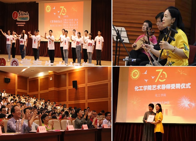 在奉贤校区敬贤堂举办美美与共“京彩化工”京胡艺术讲座暨师生京剧演唱会,以一场传统文化盛宴为祖国70华诞庆生。上海京剧院国家一级琴师周晓铭受邀带来精彩的京胡艺术讲座。闵行区政协委员、闵行区京剧票友协会会长余剑强,党委副书记高艺霞,校工会京剧社社长李廷雨、学院全体本科生辅导员及300余名学生参加了本次活动。