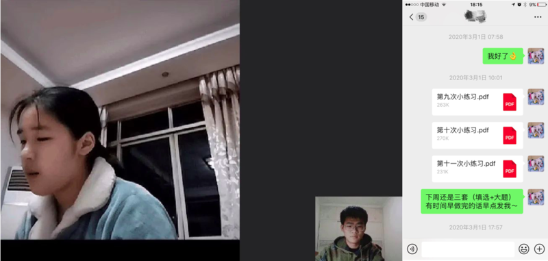 众多志愿者面对疫情当前并没有停止服务奉献的脚步,而是创新志愿形式,依托网络展开温暖人心的线上志愿服务活动。化工176钱逸玲同学通过钉钉直播和微信答疑的方式,为一个高三的学生提供数学科目的系统化辅导,目前已连续辅导7次共12小时。针对学生的实际情况,钱逸玲找出了自己高中时期的数学笔记,每天扫描一部分后分享给她,并且还精心挑选了部分历年上海高三一模二模试卷的题目帮助她巩固练习。国产无码