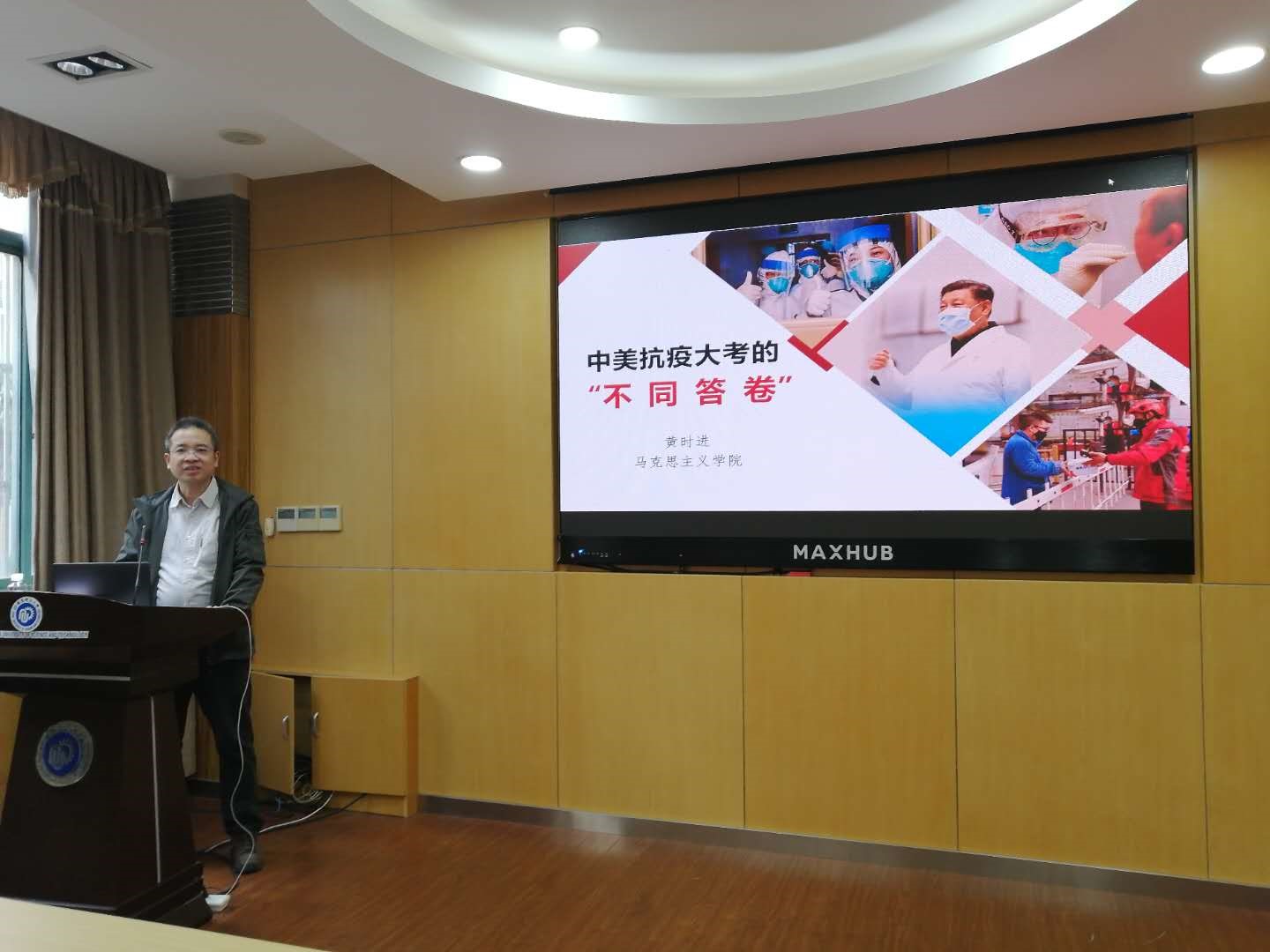联反所党支部邀请马克思主义学院黄时进教授,在实验16楼106室为联反所党支部、石油加工研究所党支部、行政党支部、产品工程系与测试平台联合党支部、化工有机热力学党支部、联反所研究生第一党支部做《中美抗疫大考的不同答卷》讲座。
