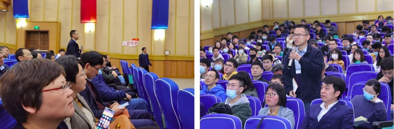 党课结束后,在场师生与何鸣元院士进行了热烈的交流与讨论。着眼超临界技术应用、二氧化碳化工及工程、模块式与可移动反应器等尖端领域,何鸣元院士鼓励青年师生要坚持“实践、认识、再实践、再认识”的不断反复,将科研志向与为祖国繁荣发展紧密结合,不断推动化工领域绿色发展。