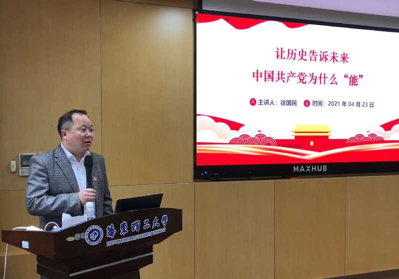 朱学栋在总结时指出,徐国民教授的报告内涵丰富、资料详实、论证充分,让我们对中国共产党为什么能领导中国革命和建设取得胜利有了更为清晰、深刻的认识,并号召全体教师守牢育人初心,为党育人、为国育才,担负起立德树人的使命,持续推动学校、学院高质量发展,以优异成绩向党的百年华诞献礼。