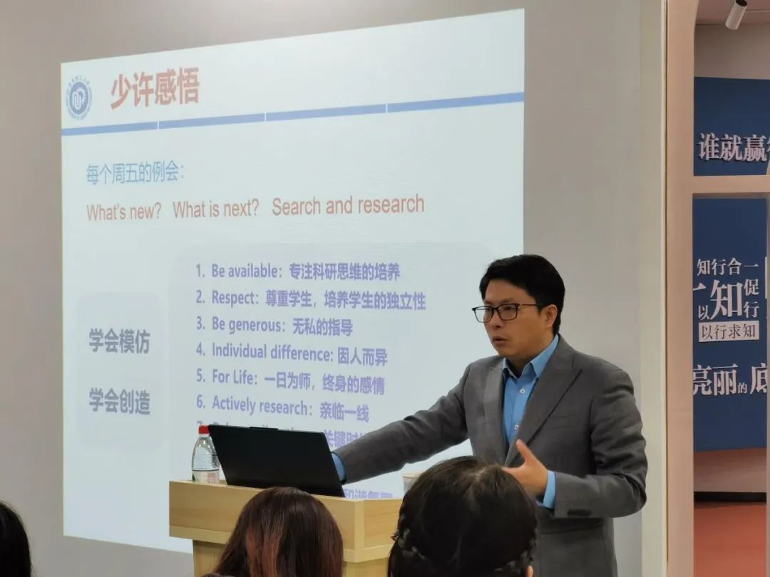 龙东辉教授对“科研Research”的内涵进行了深入的阐述,让同学们在迈入科研的大门之前找准方向,激励同学们:科研要学会模仿,学会创造!科研要善于思考,善于钻研!科研要敢于执行,敢于批评!作为一名资深导师,龙教授认为教师应该牢记“学高为师,身正为范”的责任和担当,学生也应当对科研生活充满热情和动力,积极向上的研究氛围、教师与学生教学相长,才是科研正确的打开方式。