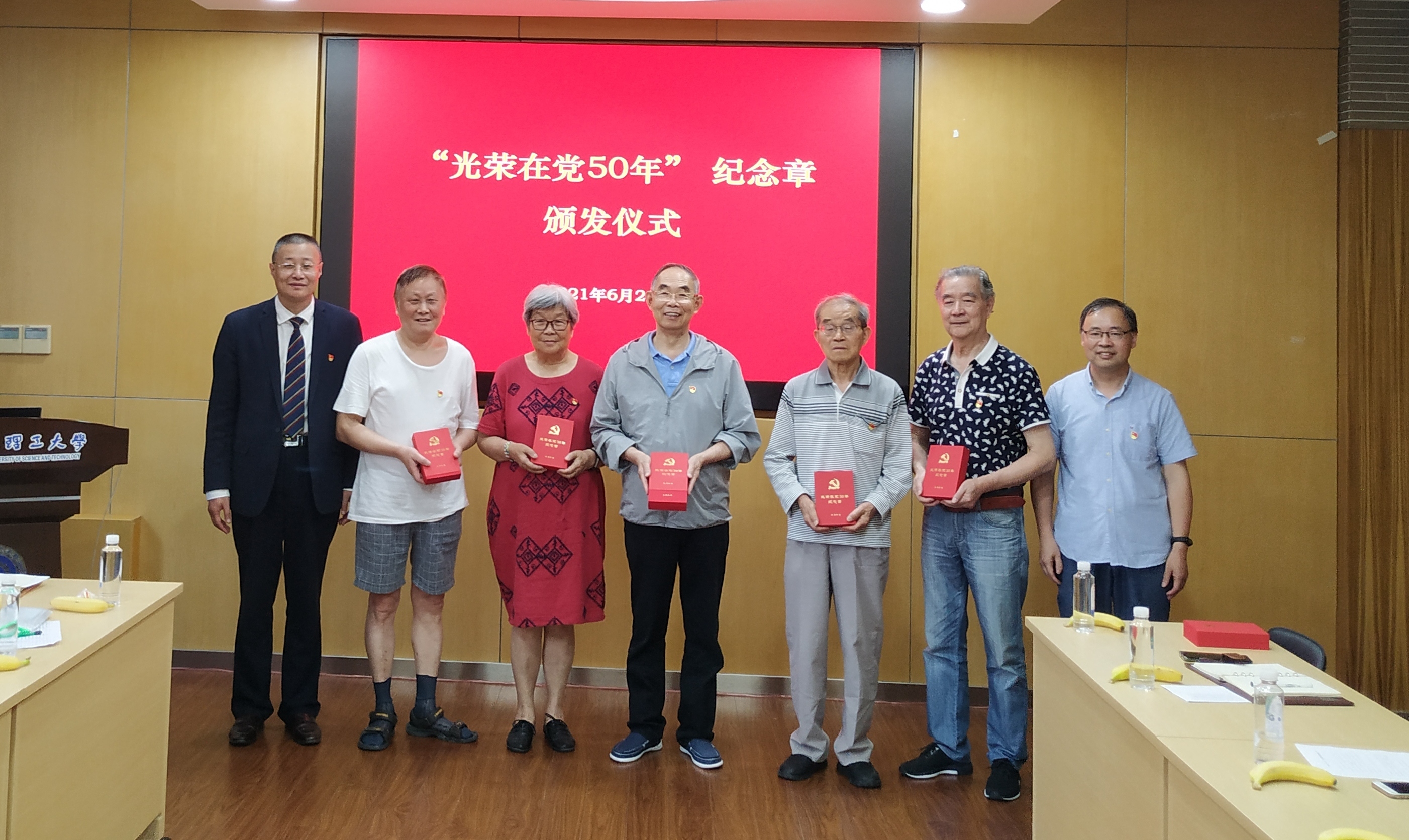 在实验十六楼108室举行“光荣在党50年”纪念章颁发仪式。学院党委委员、副院长方波,工会主席朱志华,党政办主任孙莉,及朱子彬、翁惠新、黄发瑞、任德呈、徐佩若、徐懋生、季桂南、冯国祥、潘炳忠、张培辉、骆赞椿、齐鸣斋等退休老党员出席。活动由离退休工作党委第10党支部书记张华主持。