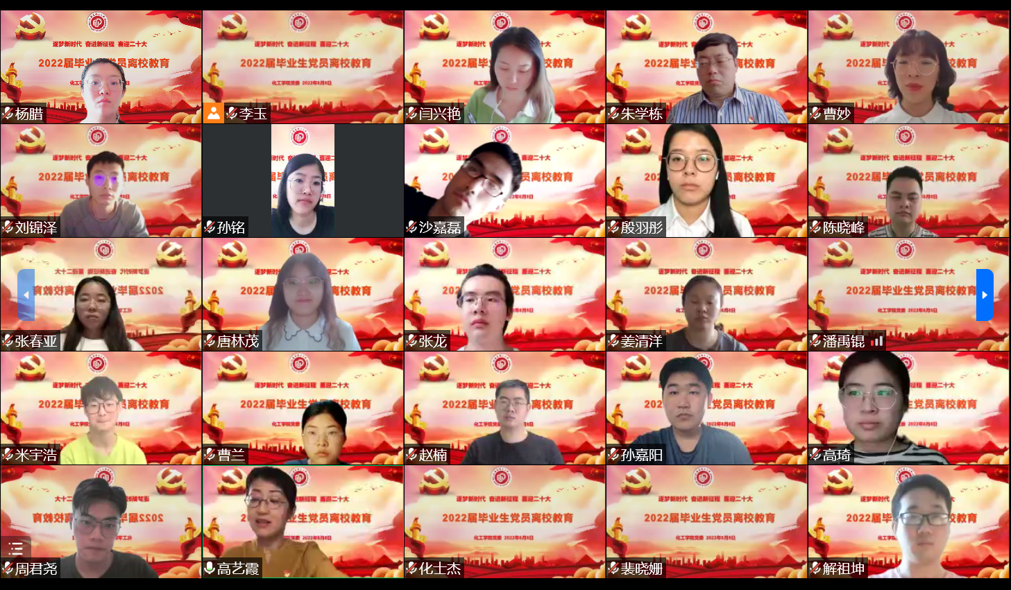 在线开展毕业生党员离校主题教育活动。学院党委书记朱学栋、副书记高艺霞、组织员李玉、辅导员杨腊和曹妙以及全体毕业生党员参加活动。活动由高艺霞主持。