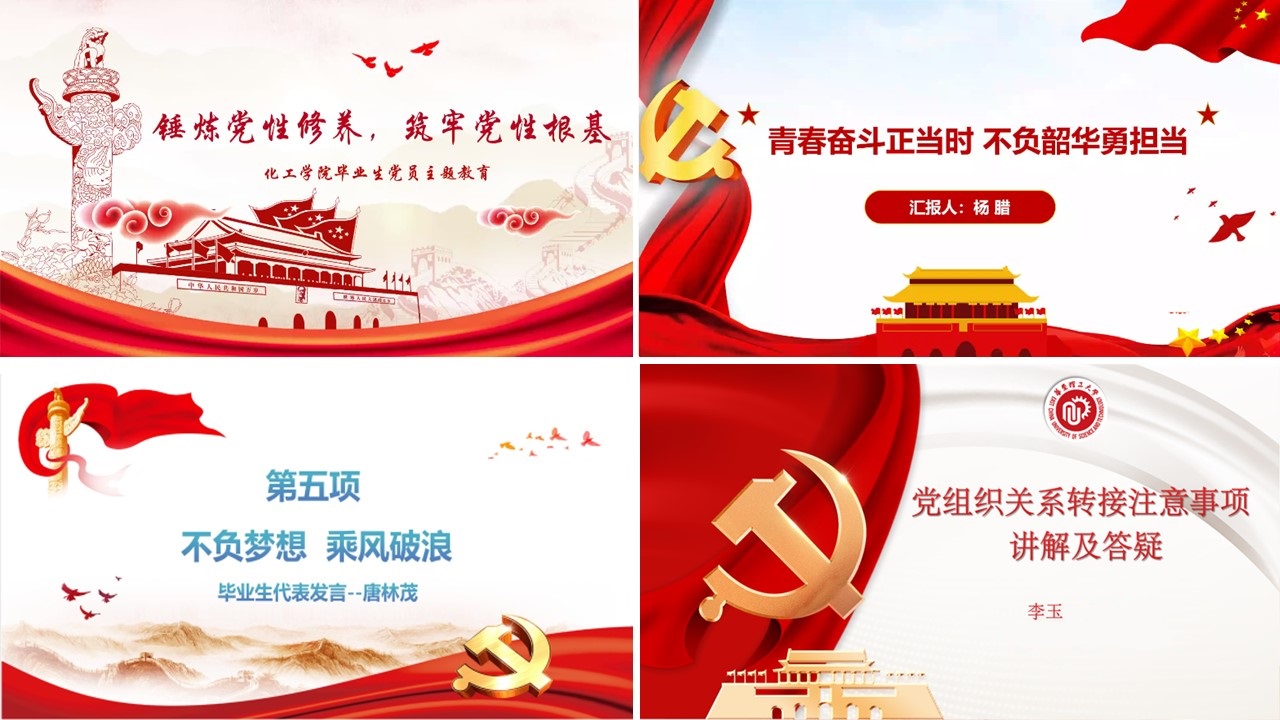 曹妙和杨腊分别以“锤炼党性修养,筑牢党性根基”和“青春奋斗正当时,不负韶华勇担当”为主题,为毕业生党员们带来离校前的最后一次党课,勉励他们在榜样的引领下,永远保持对共产主义的坚定信仰、对中国特色社会主义的坚定信念,做政治上绝对可靠、思想上绝对纯洁、能力上绝对过硬的好党员,在知行合一中强化使命担当,以实际行动迎接党的二十大胜利召开。