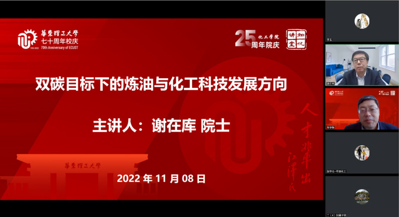 重点打造了化工高层次学术讲堂——“知化讲堂”。11月8日,首期活动邀请了中国石油化工股份有限公司总工程师谢在库院士做客,作了题为“双碳目标下的炼油与化工科技发展方向”的报告。报告会由国产无码