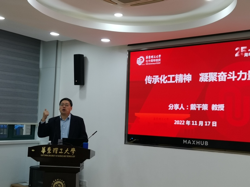 原副校长、国家有突出贡献的中青年专家戴干策教授作了题为“传承化工精神,凝聚奋斗力量”的教学经验分享。国产无码