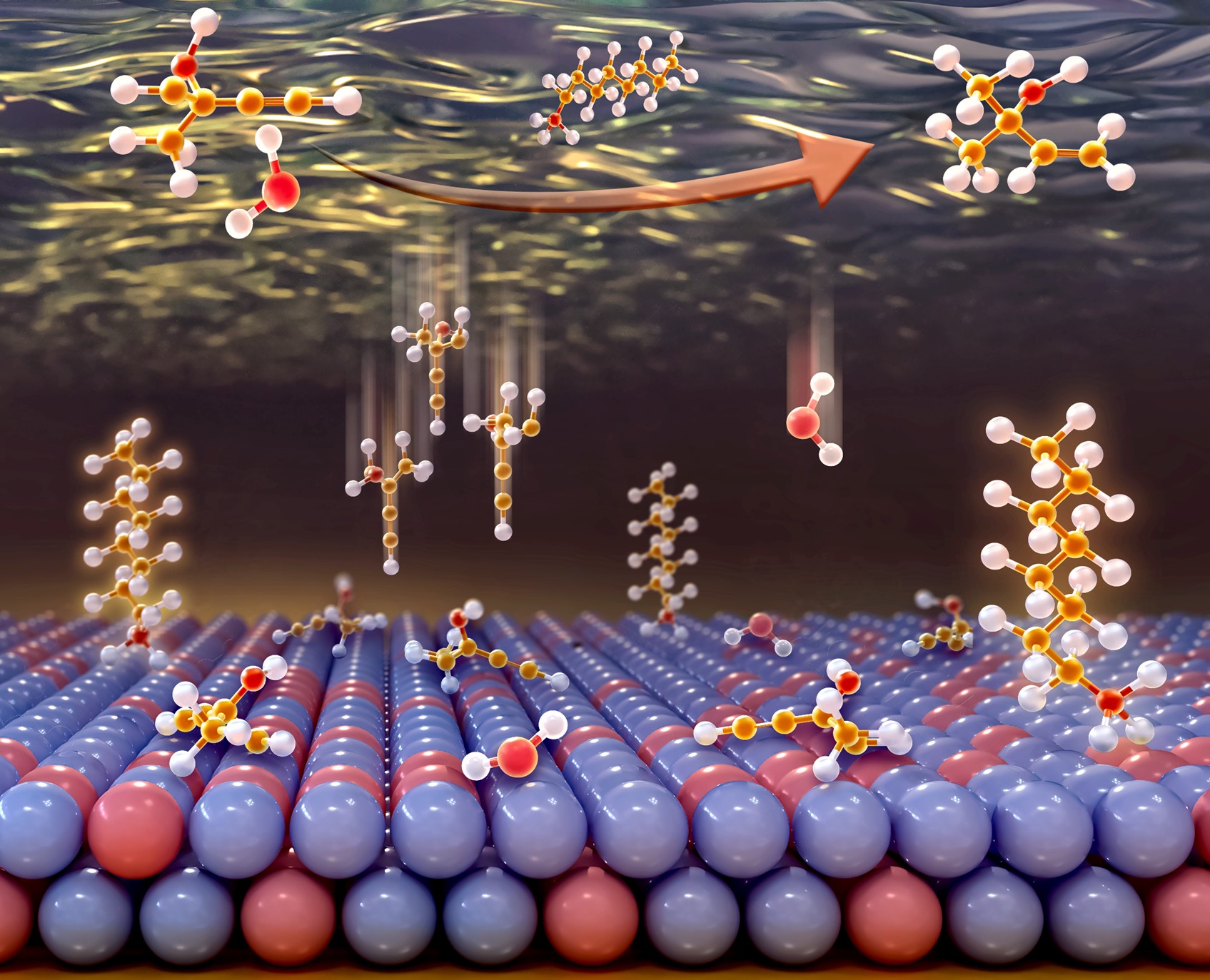 烯醇是合成维生素等医药品的关键中间体,炔醇电催化半加氢(氘)实现高值(氘代)烯醇制备的有效方法。电催化反应发生在带电的电极-电解质界面,电催化剂和电解质都对电化学性能有很大影响。具有合适d带中心的钯基催化剂在炔醇半加氢中有着广泛的应用。通常可以通过掺入金属(Ag、Au、Cu、Bi等)或非金属(P、C、S、N等)物种来调节Pd的电子和/或几何特性,以克服选择性-活性的悖论。另一方面,对于以水为氢源的电催化还原反应,界面水的传质和活化对于活性氢的形成和利用都非常重要。同时,界面上局部微环境和反应中间体吸附的适当调整已被证明可以抑制HER,并促进目标反应的进行。因此,合理设计Pd基电催化剂以及调节电解液组成对于电催化炔醇半加氢选择性以及活性的提高有着重要意义。