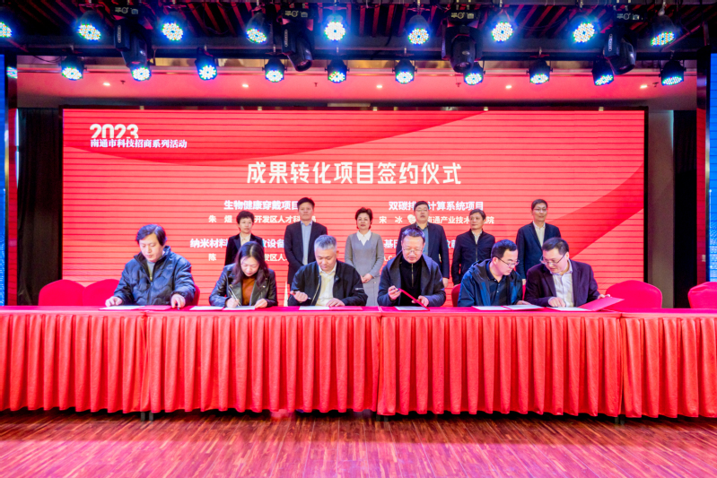 会上,南通市副市长陈冬梅和学院领导共同见证了“基因类药物高效载体产业化”“纤塑复合的废纺物理升级系统及示范生产”等18个成果转化项目和技术转移项目的集中签约。