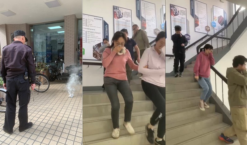 的师生普及了基础消防安全知识。下午两点,段凯洋宣布消防应急疏散演练正式开始,工作人员依照演习预案分别在实验12楼南侧和实验16楼南侧门口点燃烟饼,开始模拟火灾发生的场景,两栋实验楼也同时响起了消防报警铃声及语音提示。实验12楼及实验16楼的全体师生在34位楼层引导员的有序引导下,捂住口鼻,快速且有秩序地撤离到了安全区域。最后,段凯洋宣布2023国产无码