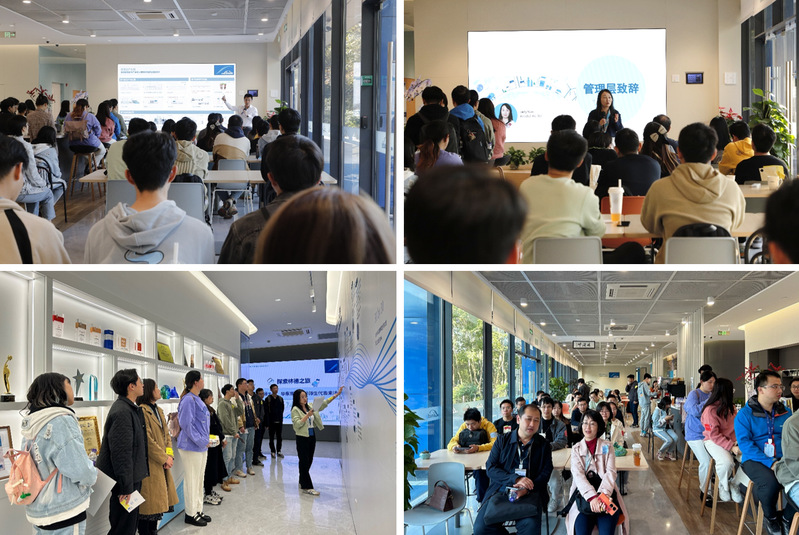 最后一站,师生来到林德总部。林德大中华区副总裁、人力资源部负责人毛凌云,清洁氢能业务发展总监Lawrence Koh等先后带来精彩分享。同学们与林德进博会展台现场连线,在主持人的带领下共同感受林德亮相第六届中国国际进口博览会的精彩呈现,深入了解林德的创新实力和技术底蕴。最后,师生参观了林德国产无码墙与办公区,感受林德多元化和包容性的国产无码,了解员工福利、职业发展计划等,赋能学子职业发展规划。