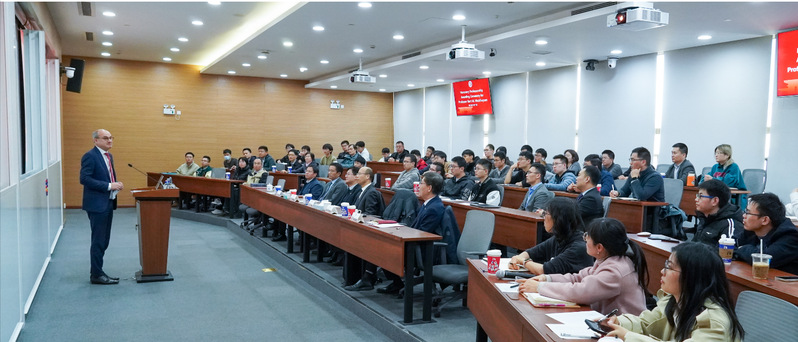 聘任仪式结束后,Weckhuysen教授作了题为“Towards the Refinery of the Future: Advances in Operando Spectroscopy and Microscopy of Heterogeneous Catalysts”的学术报告,介绍了镍(热催化转化)和铜(电催化转化)上CO2活化的最新进展,以及使用原位表征方法来阐明反应和失活机制的光谱和显微镜技术,分享了在生物质和塑料垃圾等方面开展的催化解聚研究成果。