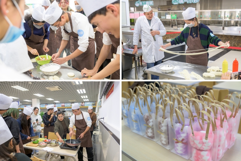 活动开始,辅导员阿曼•阿吉向参与活动的同学们介绍了丝绸之路沿途美食以及美食与民族团结的故事;食堂师傅选取新疆大盘鸡、兰州拉面、烤包子等特色美食进行了现场教学。各民族学生围上围裙,擀面、拉面、煎炒、放调料……60分钟后,一道道色泽诱人、香气扑鼻的特色民族美食就摆在了展示台上。每位同学都品尝到了自己的“美食作品”,还拿到了举办方准备的小礼品。