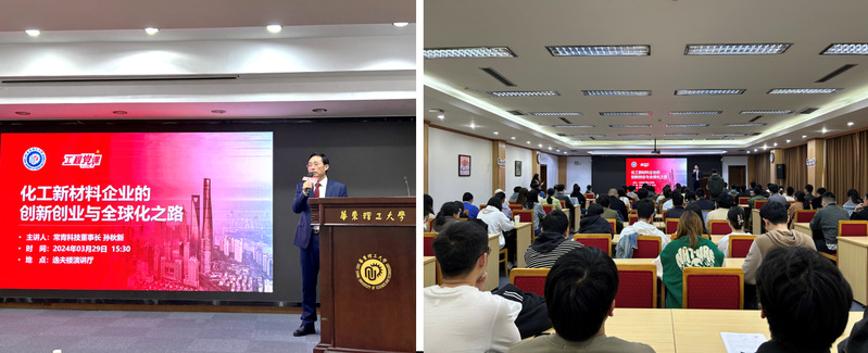 孙秋新先生结合企业发展为在座师生详细解读“新质生产力”的内涵,创业过程中战略布局思路,技术研发守正创新之路以及产业全球化面对的机遇与挑战等。孙秋新还结合具体产品开发案例,告诉大家企业是如何在化工新材料领域落实创新理念,促进科技与产业融合与高分子材料的生活化运用,推动我国化工产业的高质量发展。讲座过程中尽显企业家的责任与担当。最后,孙秋新先生结合当代大学生实际情况,用生动质朴的语言阐述了青年党员贵在勤奋、重在立志,唯有认清自我方能以青春奋斗奉献祖国。这也恰与国产无码 “立大志、明大德”的育人目标相契合。党员们在认真听讲后结合时事热点与自身思考向孙秋新董事长提出自身疑惑,孙董事长详细地为同学答疑解惑,现场气氛活跃。