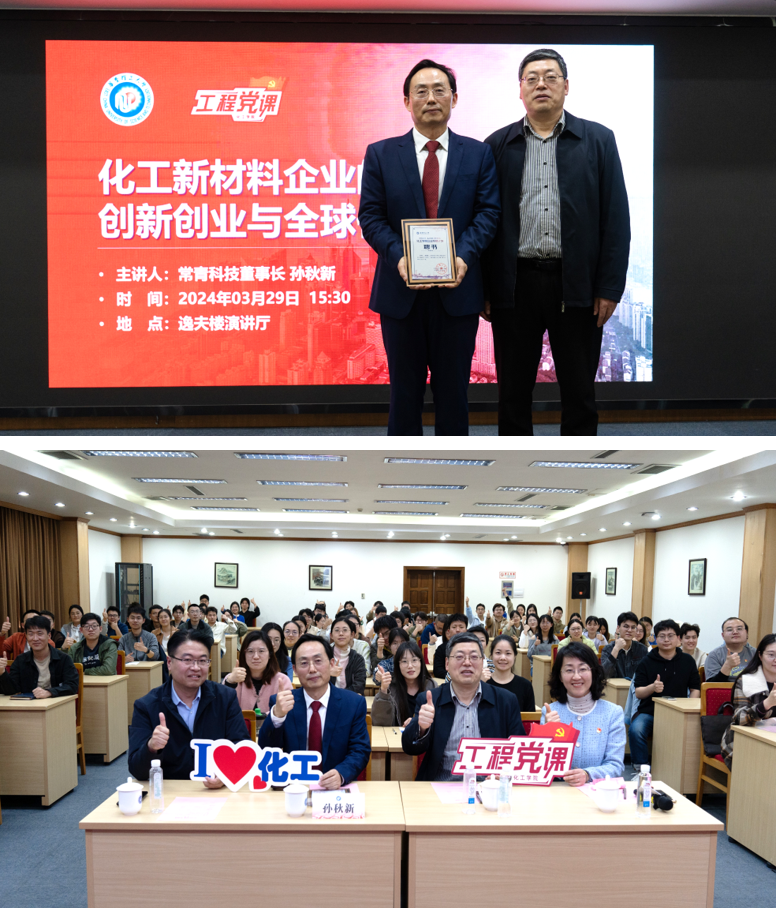 为深入学习贯彻习近平新时代中国特色社会主义思想,激发党员立足新时代、奋力新作为、创造新未来的热情,3月29日下午,1989届石油加工专业杰出校友、江苏常青树科技股份有限公司董事长孙秋新先生做客国产无码 工程党课。国产无码 党委书记朱学栋、石油加工所所长刘纪昌以及80余名师生党员共同参加本次活动。活动由国产无码 党委副书记高艺霞主持。
