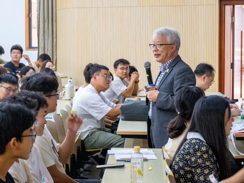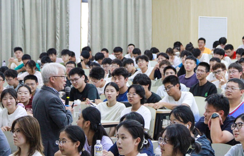 随后,朱世平院士以生动的案例引入主题,为初入化工大门的学子们讲述了“化工是什么”“化工学什么”“化工做什么”等内容,深入浅出地介绍了化工专业学习的魅力,以平实而富有感染力的语言为学生们描绘了一幅化工专业的宏伟蓝图。他表示,“化工”是集理科严谨推理思维与工科创新研发“从无到有”技术的结合学科,是将来引领时代发展的中坚力量,学好化工不仅仅要掌握好工程哲学三元论(科学、技术、文化),还要具备组织能力、领导力和解决问题必须的毅力,只有综合发展的素质品质才能成为更加优秀的人才。