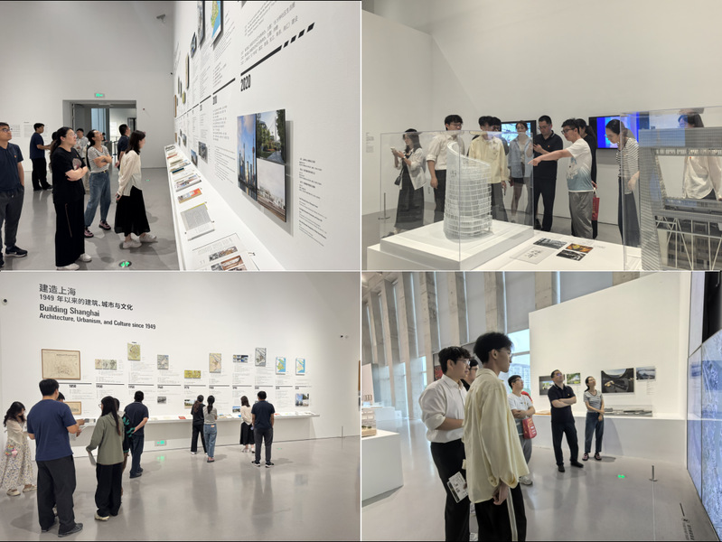 活动第三站来到西岸美术馆,师生党员共同参观了“建造上海:1949 年以来的建筑、城市与文化”特展。展览通过9个主题板块、80余个经典案例,系统呈现了上海从社会主义初期建设到全球城市崛起的历程。师生党员驻足于陆家嘴CBD规划模型、世博园区设计图纸前,深刻体会到城市发展背后的“中国智慧”:从工人新村的民生关怀到黄浦江岸线的生态修复,从科技创新园区的崛起到庭园式社区的营造,上海始终以“人民至上”为核心,在保护与创新中实现可持续发展。