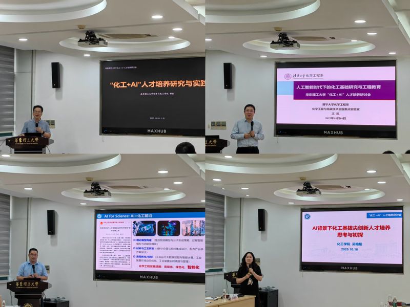在大会报告环节,钟秦以“‘化工+AI’人才培养研究与实践”为题,分享了AI时代背景下化工专业的建设思路、人才培养方案设计、课程体系构建及实践教学创新等内容。王凯作“人工智能时代下的化工基础研究与工程教育”报告,系统介绍了清华大学在“AI+化工”领域的新研究布局,并从前沿视角展望了化工人才培养的未来发展方向。
